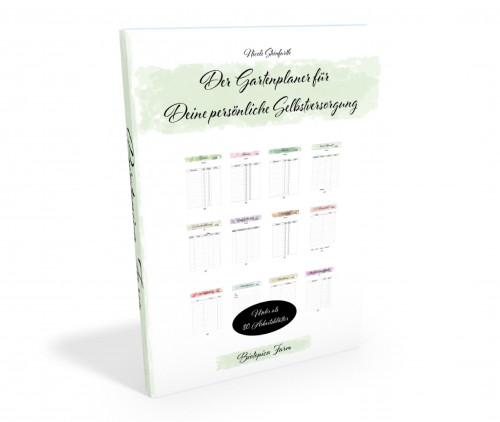 „Der Gartenplaner für Deine persönliche Selbstversorgung kommt mit einem 40-Seitigen E-Book mit zahlreichen Aufgaben, über 80 Arbeitsblätter, um den Überblick Im Garten zu behalten, plus einem To Do Listen Paket.